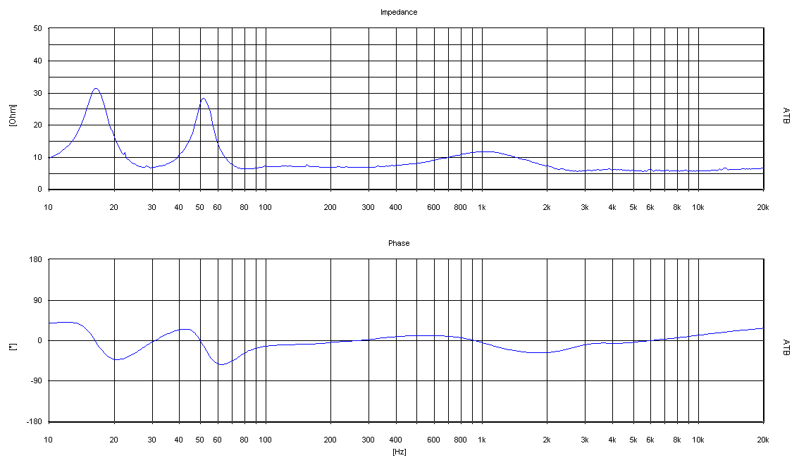 Ich habe einmal ein paar Messungen von meinem Lautsprecher gemacht, zunächst die Impedanz. Zum vergrößern bitte auf das Bild klicken.