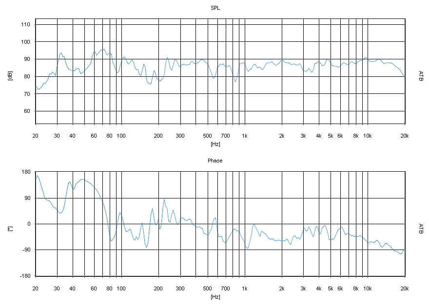 Nun der Frequenzgang und die akustische Phase, alle Messungen sind im Abstand von einem Meter und axial auf Höhe zwischen HT und TMT gemessen. Zum vergrößern bitte auf das Bild klicken.